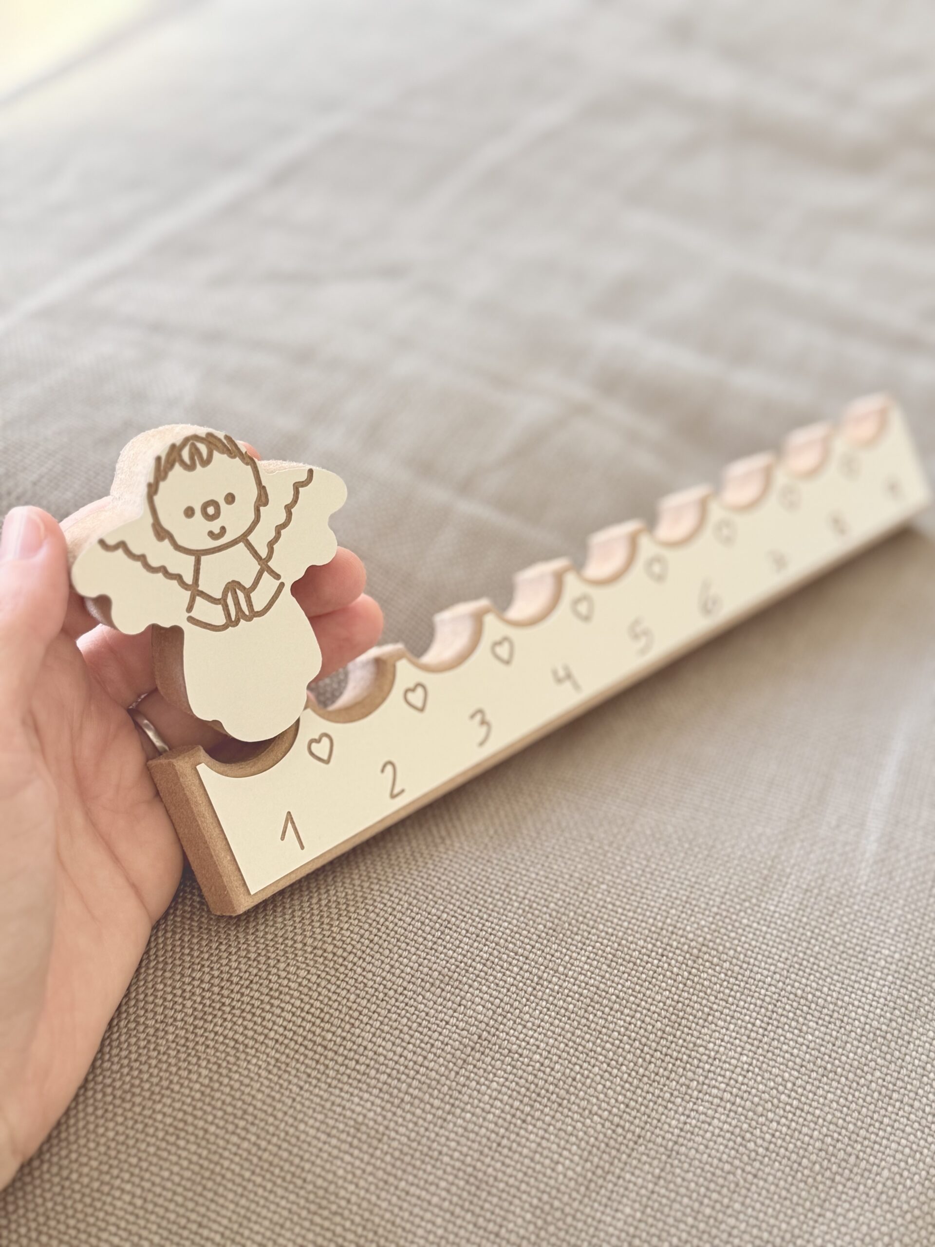 Angelito y base de Mdf blanca, biselada y tallada, para marcar la novena 🙌 y que no se nos pase ningún día 🥰