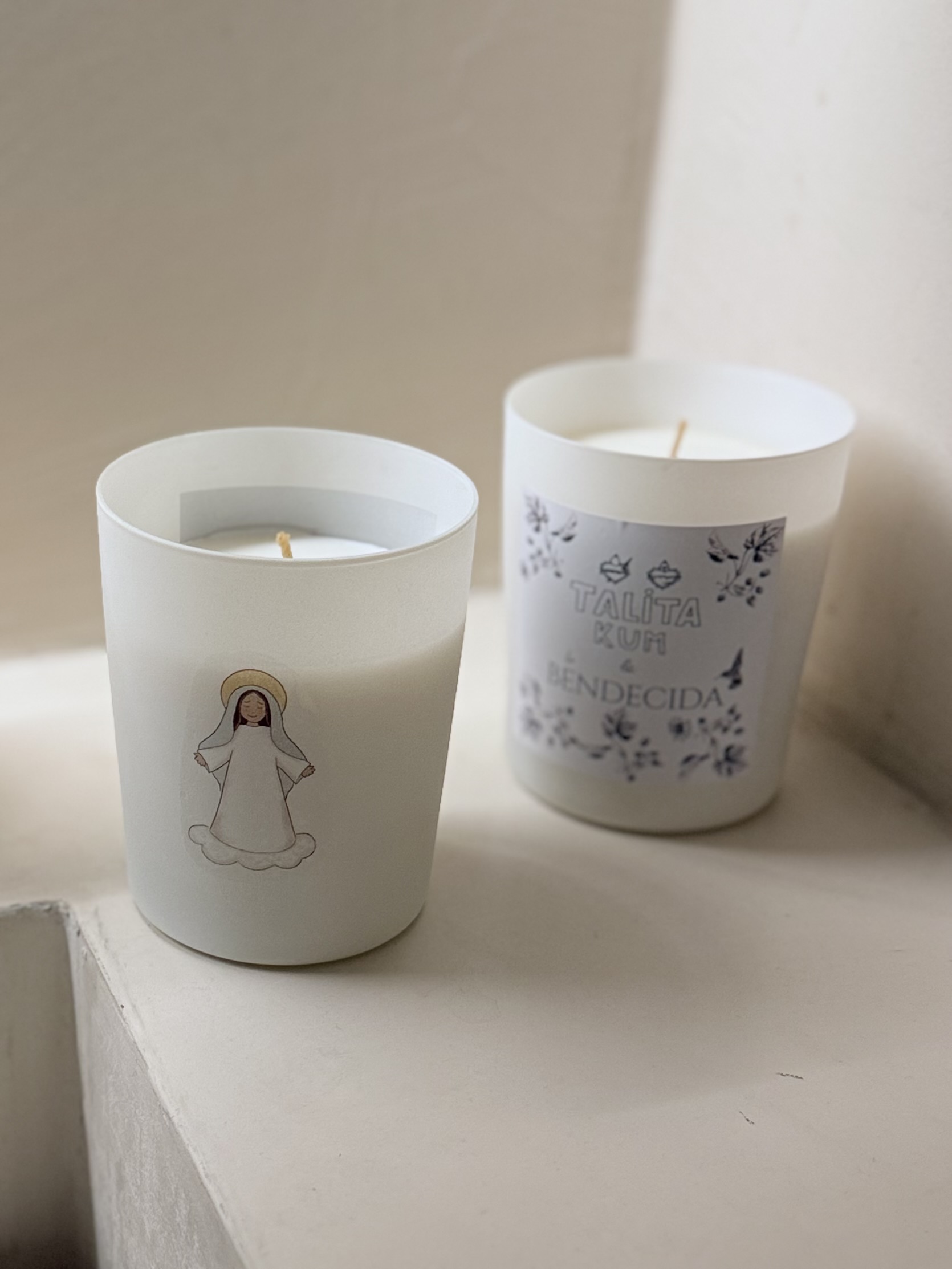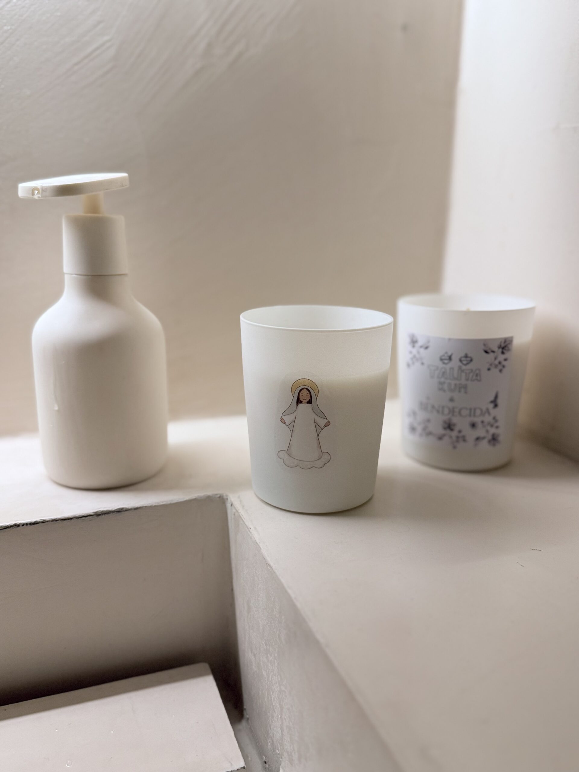 Vela exquisita de rosas con Virgencita. En colaboración con La Bendecida.
