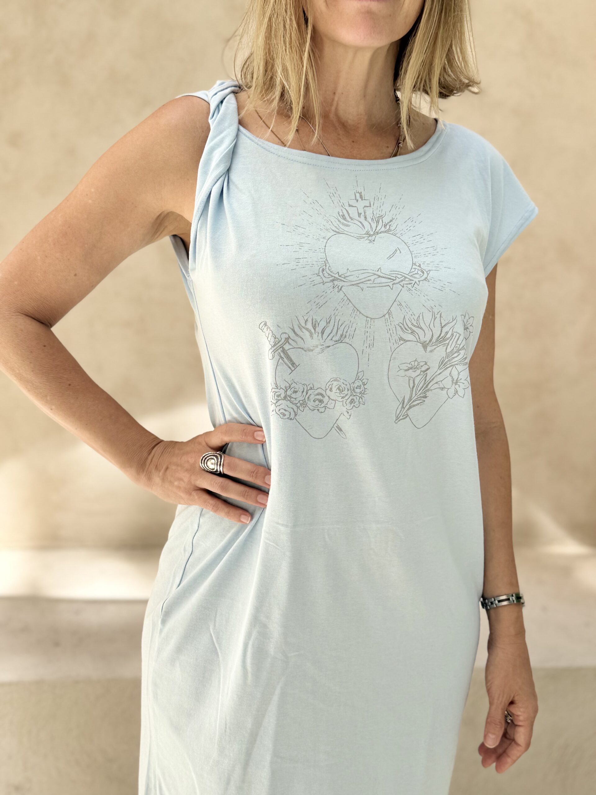 Vestido 100% algodón celeste.